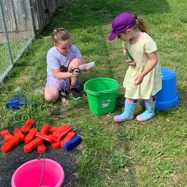 There are always chores that need to be done on the farm to enhance the lives of the donkeys and to provide visitors with a clean and safe place to visit. Pasture picking (polite way to say "pick up poop"....no worries....you don't have to use your hands!); scrubbing grain and water buckets, raking up stones, sweeping & cleaning inside the barn and (the best part) brushing mini donkeys and mules. Of course, there could be other chores as needed!